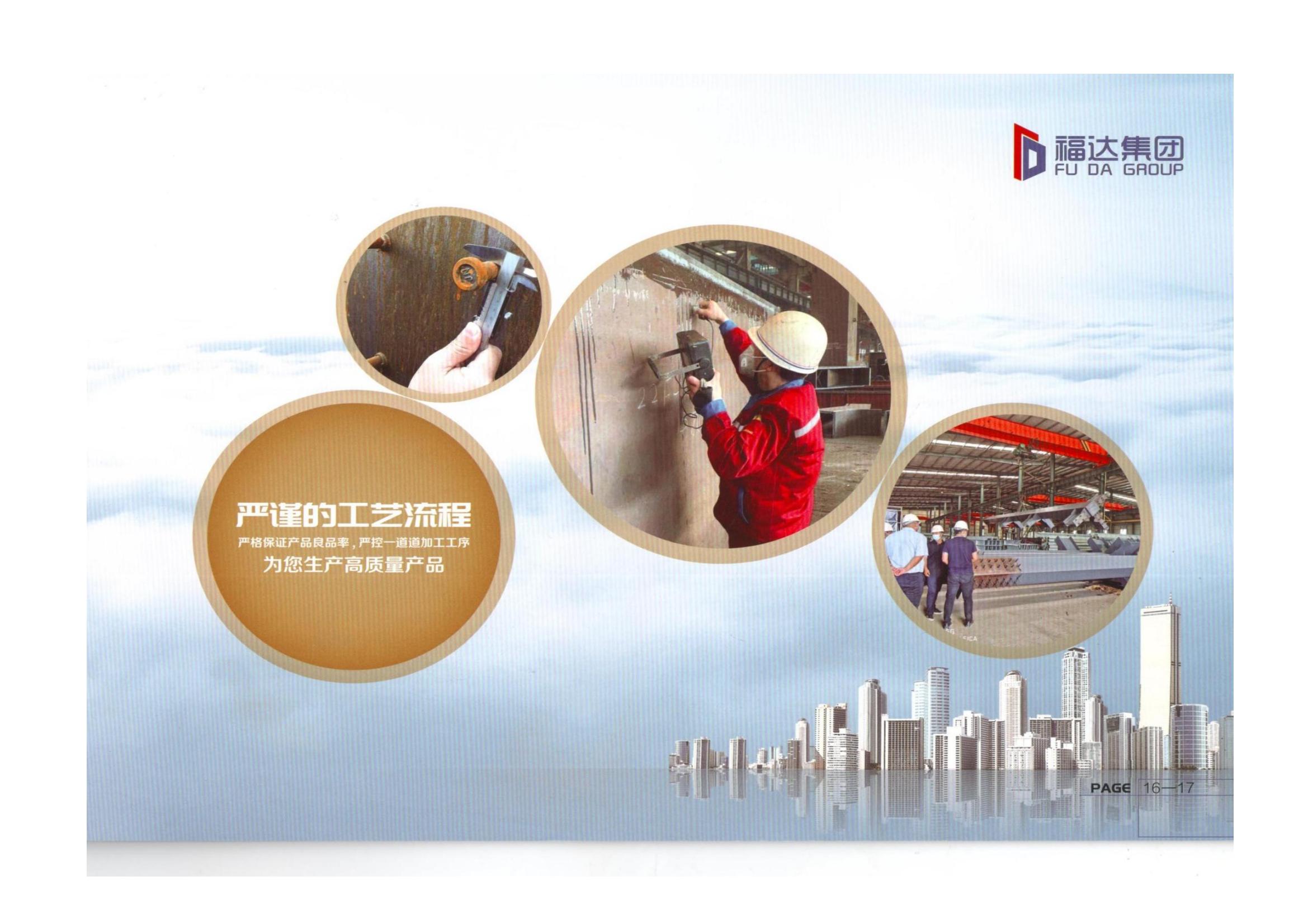 Shandong Fuda Construction Group Co., Ltd. was formerly known as Juye Fuda Heavy Steel Construction and Installation Engineering Co., Ltd. The company is located in the Science and Technology Industrial Park of Juye County, Shandong Province, 3 kilometers away from the Ridong Expressway, with a superior geographical location and convenient transportation. The company covers an area of 46000 square meters, with a production and construction area of 31000 square meters, an annual output value of 600 million yuan, and profits and taxes of 12 million yuan. It currently has more than 200 professional and technical personnel, including 36 personnel with intermediate professional titles or above, and has introduced high-end talents. With strong technical research and development capabilities and abundant human resources, it is a comprehensive modern enterprise that integrates design, research and development, production, and installation. The company has complete qualifications, including Level 1 professional contracting for steel structure engineering, Level 2 general contracting for building engineering construction, Level 2 professional contracting for building decoration and decoration engineering, Level 2 professional contracting for building curtain wall engineering, Level 3 general contracting for municipal public engineering construction, Level 3 professional contracting for foundation engineering, Level 3 professional contracting for environmental protection engineering, and no classification of construction labor. It has also passed the IS09001 quality, safety, and environmental system certification, We have 9 steel structure production lines, with an annual production and processing capacity of 100000 tons of light and heavy steel. We can undertake projects such as high-rise buildings, prefabricated public buildings, sports venues, and large-span bridge projects. The company emphasizes the system of quality first and safety accompanying, regularly organizes employee skill training, passes safety positions, improves employee technical abilities, and enhances employee safety awareness.