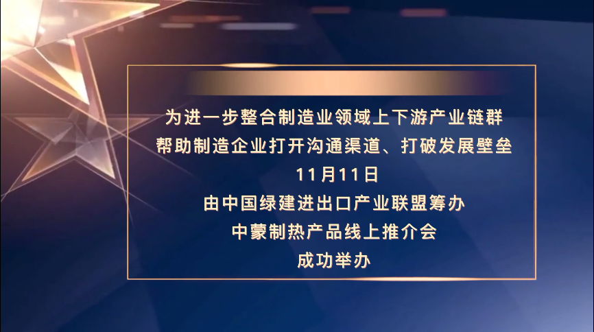 發展壁壘, 11月11日,由中國綠建進出口產業聯盟籌辦的中蒙制熱產品線上推介會成功舉辦。聯盟郭理事長、內蒙辦事處主任依拉勒圖、新疆辦事處主任胡秀萍、蒙古國神話混合超節能〖查看詳細〗